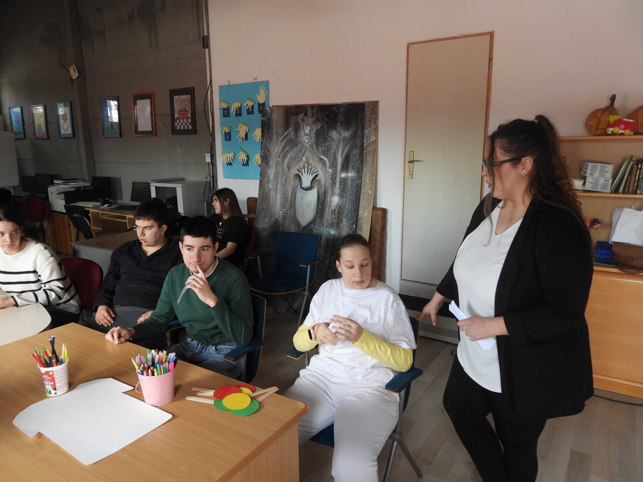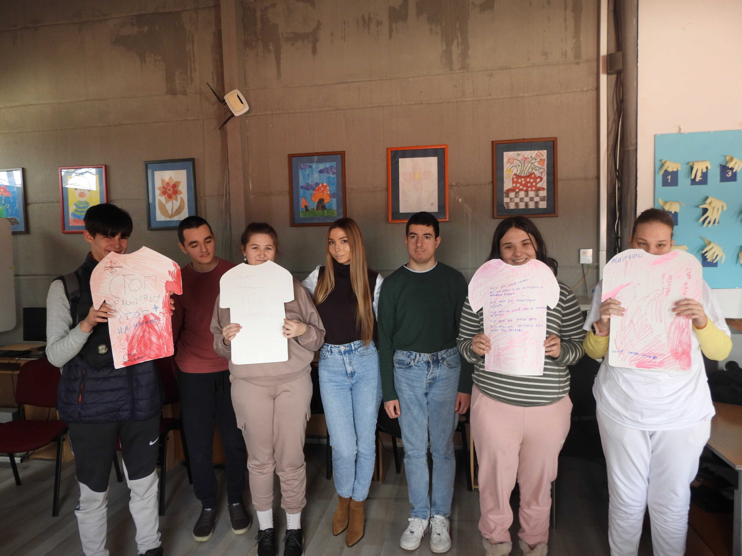 У креативном делу радионице, ученици су израђивали мајице које су бојили у розе боју и исписивали снажне поруке против насиља, промовишући толеранцију, разумевање и подршку.