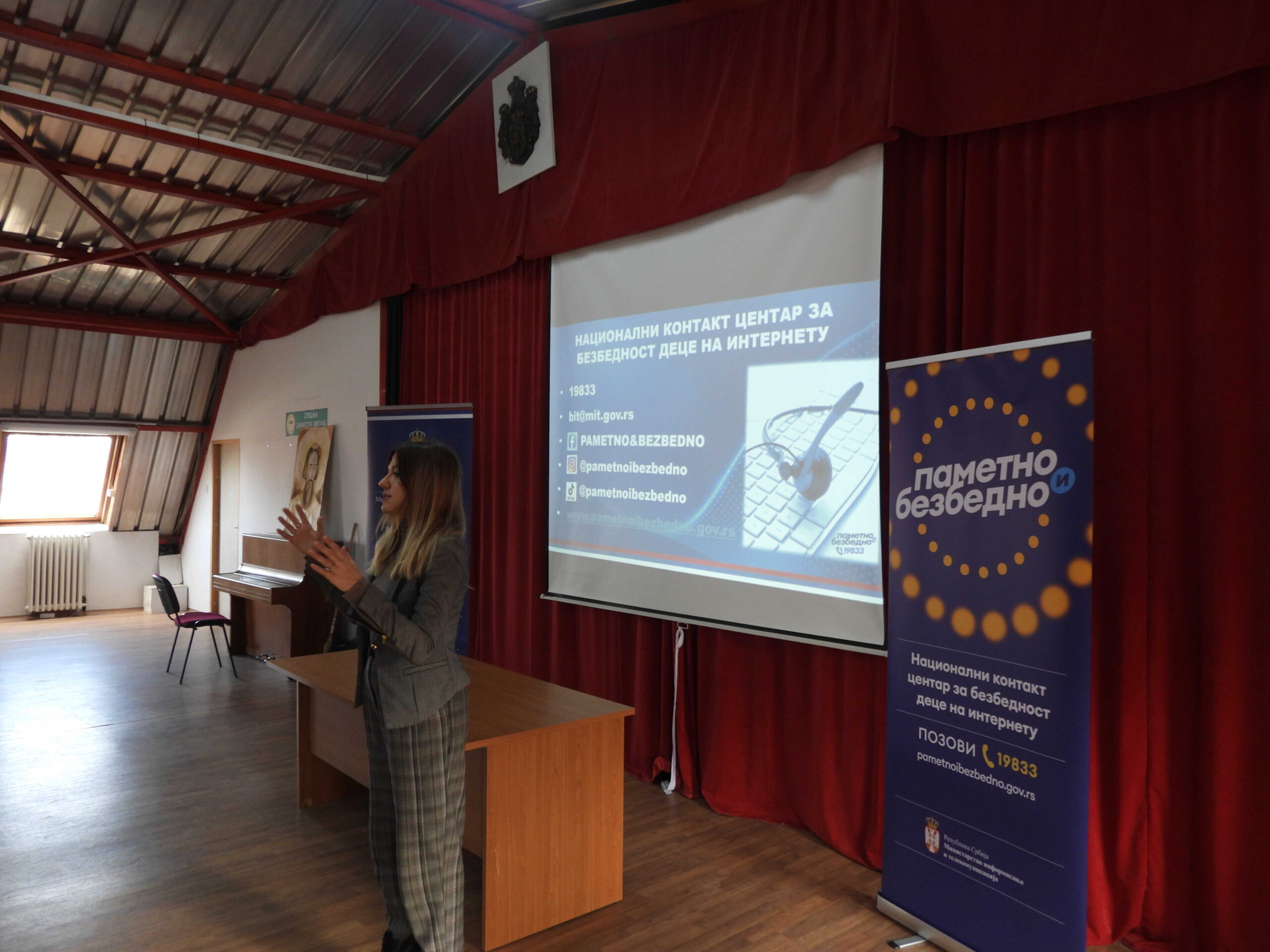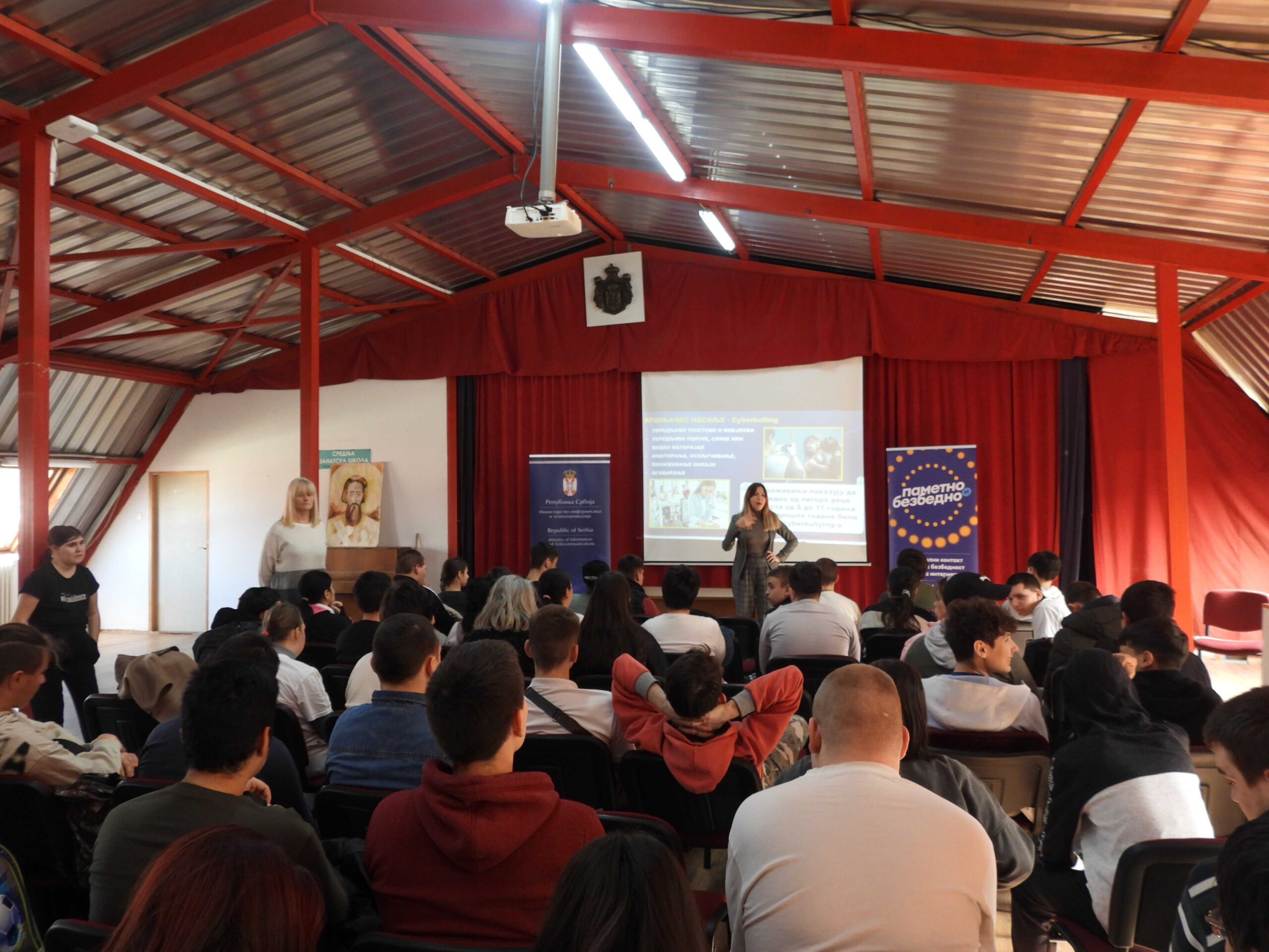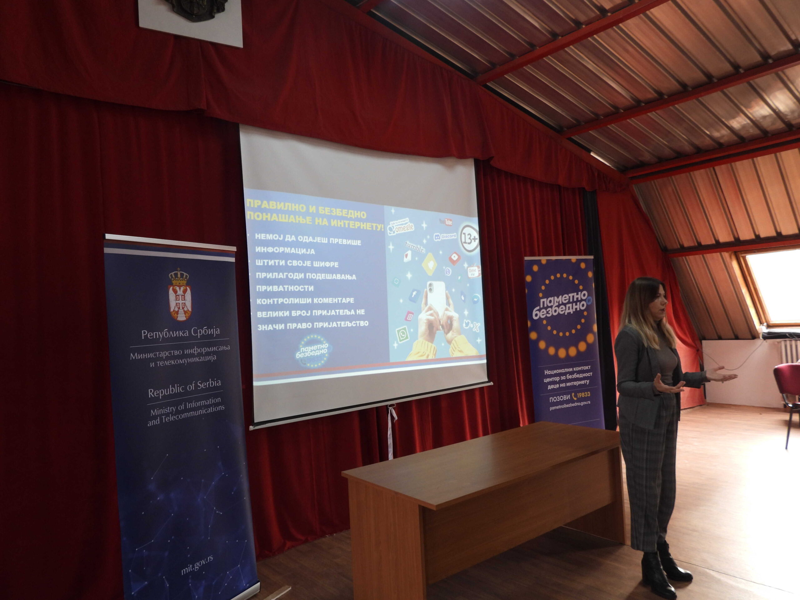Дана 4.2.2026. године, за време 4.часа, у свечаној сали школе, одржано је предавање од стране Министарства информисања и телекомуникација -Национални контакт центар за безбедност деце на интернету и то поводом Међународног дана безбедности на интернету.