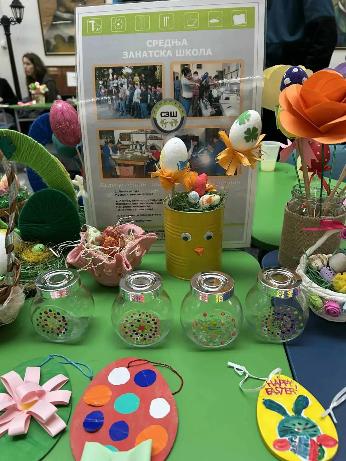 08.04.2026. године, ученици Средње занатске школе, у пратњи дефектолошкиње у настави, Милице Миловић, су са задовољством учествовали на Ускршњем вашару на позив гимназије “Патријарх Павле”, у организацији ученичког парламента. Ученике Средње занатске школе, дочекао је директор гимназије, Јасмин Николовски. Вашар је протекао у дружењу, размењивању искустава у раду и поносним представљањем својих рукотворина. Радујемо се следећој сарадњи и дружењу!