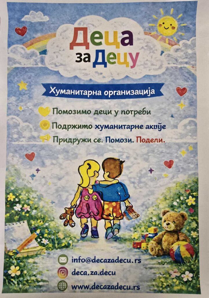 Наша школа је имала част да угости хуманитарно удружење „Деца за Децу“, које својим радом и деловањем пружа значајну подршку деци и младима са сметњама у развоју, као и њиховим родитељима и старатељима. Визија и мисија удружења усмерене су ка оснаживању појединаца и друштва у целини, са циљем да свако дете има једнака права и једнаке могућности за развој.